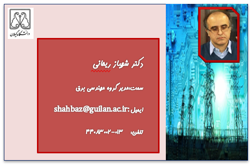 دکتر شهباز ریحانی – مدیر گروه تحصیلات : دکترای مهندسی برق مرتبه علمی: استادیار تلفن دفتر:01344083018 – تلفن دفتر گروه : 01344083002 پست الکترونیک : shahbaz@guilan.ac.ir محل وشماره اتاق : ﺗﺎﻻر اول- ﻃﺒﻘﻪ ﻫﻤﮑﻒ- راﻫﺮو ﻋﻤﺮان- ﺟﻨﺐ ﮐﻼس1 -اﺗﺎق 101-3 |